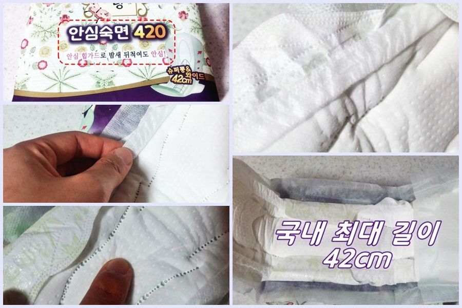 국내 최장길이인 420mm이어서 속옷에 묻는 경우가 거의 없고 사이드에 한번 더 처리되어있어서